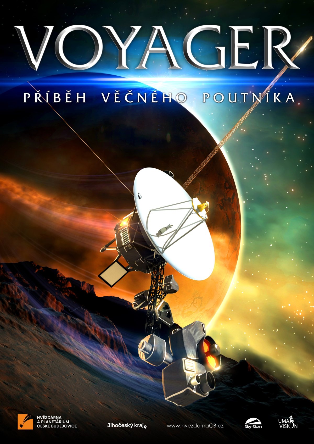 Sondy Voyager jsou nejvzdálenějšími lidskými výtvory ve vesmíru. Napříč Sluneční soustavou putují už desítky let. Navštivte s nimi úžasné světy vzdálených planet a jejich měsíců. Film je doplněn naší živě komentovanou projekcí. Délka pořadu v planetáriu je cca 55 minut. © Hvězdárna a planetárium České Budějovice s využitím materiálů UMA Vision.