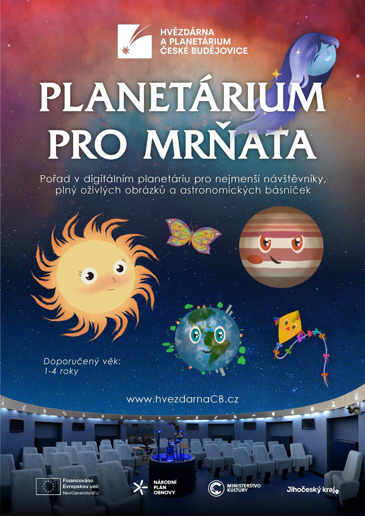 Autorský pořad ojedinělého formátu pro nejmenší návštěvníky, plný oživlých obrázků a astronomických básniček, které děti hravou formou provedou oblohou. Poznají vybraná souhvězdí naší oblohy, další nebeské objekty a seznámí se s nejzákladnějšími vesmírnými pojmy. Povídání je podkreslené dětskou hudbou a doplněné světelnými i zvukovými efekty pro co nejlepší udržení pozornosti. Délka pořadu je 30 minut. Doporučujeme pro děti ve věku 2 - 4 roky. © Hvězdárna a planetárium České Budějovice