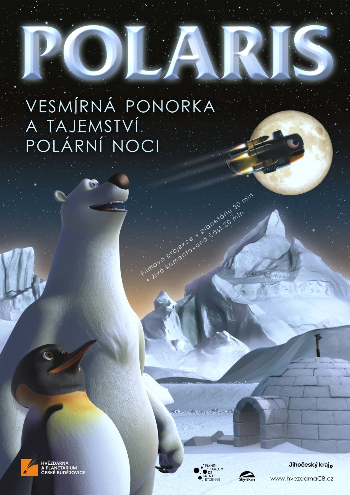 VESMÍRNÁ PONORKA A TAJEMSTVÍ POLÁRNÍ NOCI. Malý tučňák a lehce popletený lední medvěd jsou hlavními hrdiny zábavně- naučného představení pro nejmladší diváky. Brzo po jejich setkání se stanou nerozlučnými kamarády a navíc vytvoří vědecký tým. Společně se pokusí rozlousknout hádanku, proč mají doma za polárním kruhem půl roku polární noc a půl roku polární den. Film je doplněn živě komentovanou projekcí. Délka pořadu cca 55 minut. Návštěvu planetária doporučujeme pro děti od 5 let. © Pořad vyrobilo The Planetarium of Saint-Etienne.