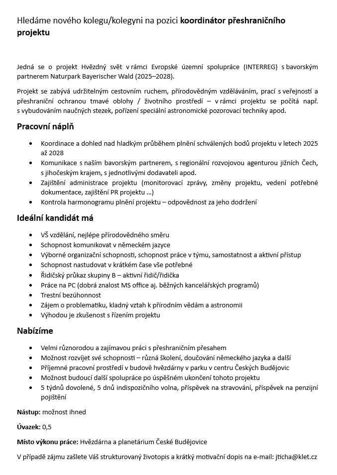 Hledáme nového kolegu/kolegyni na pozici koordinátor přeshraničního projektu